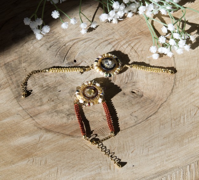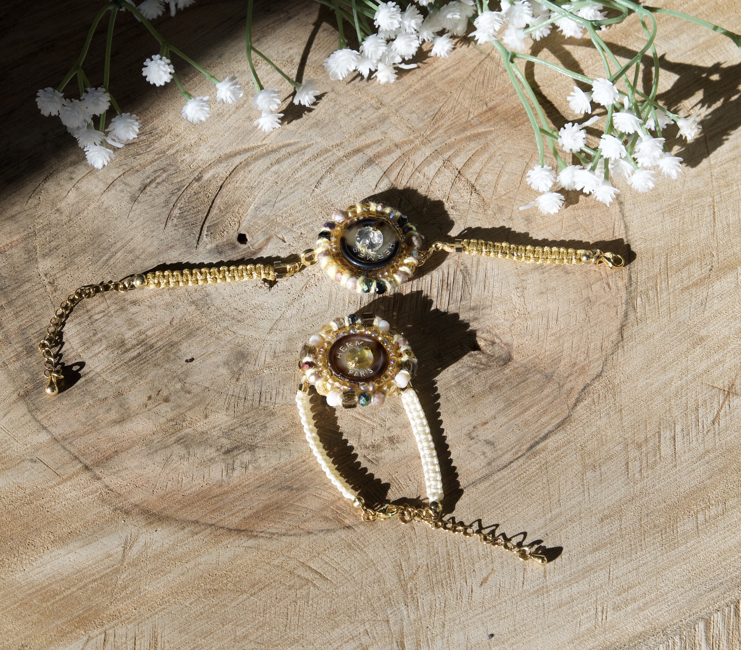 Bracelet bouton marron et beige