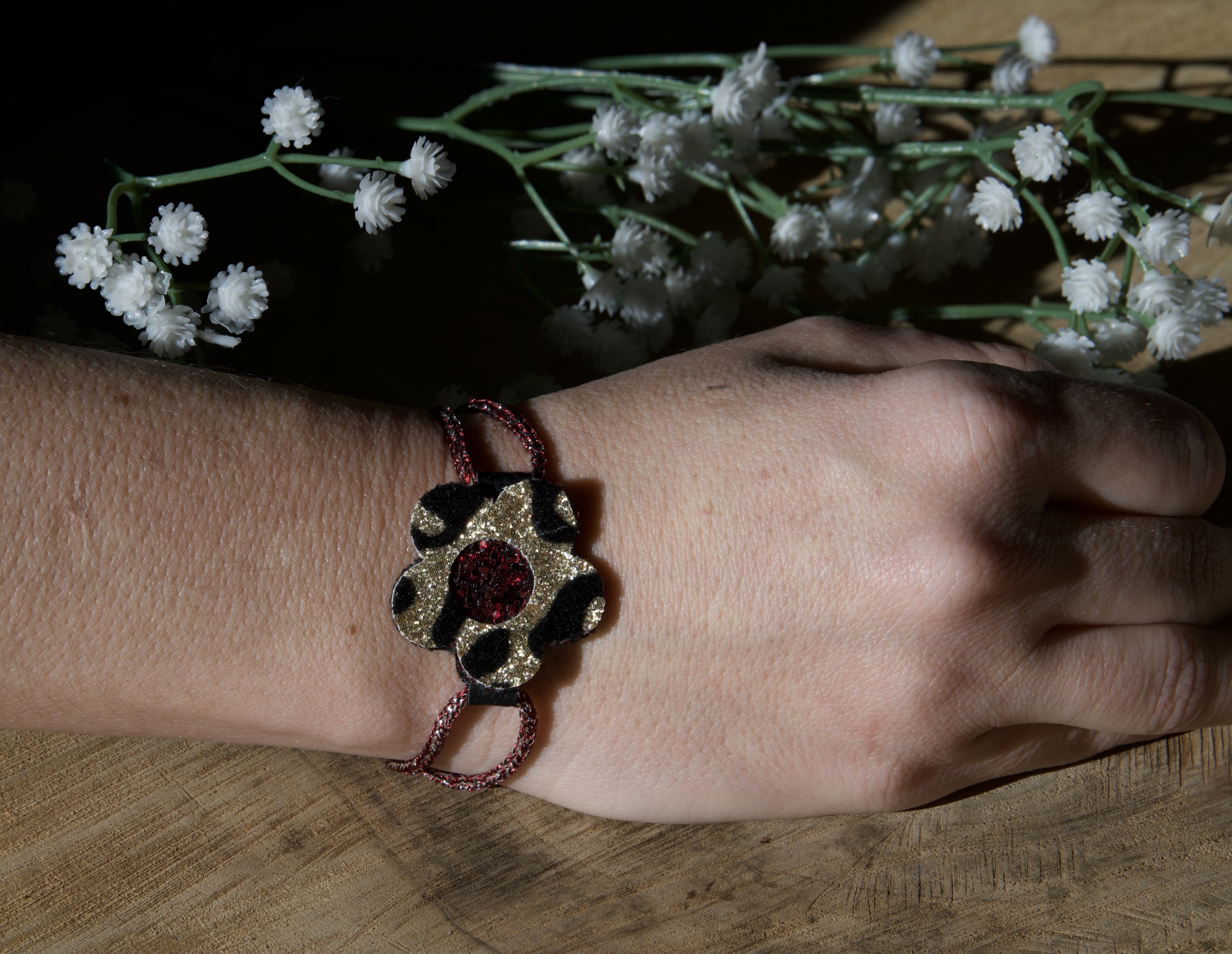 Bracelet fleur léopard bordeaux